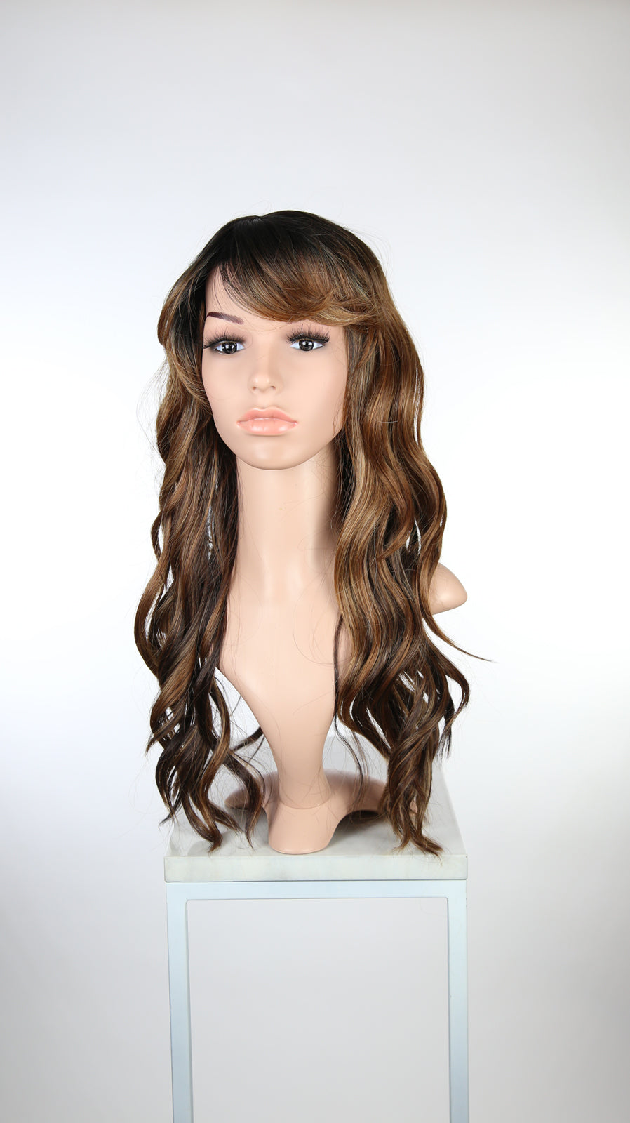 Balayage Brown Ombre Long Curly Hair with Bangs Fashion Wig - Large 23" size - HSFAN70