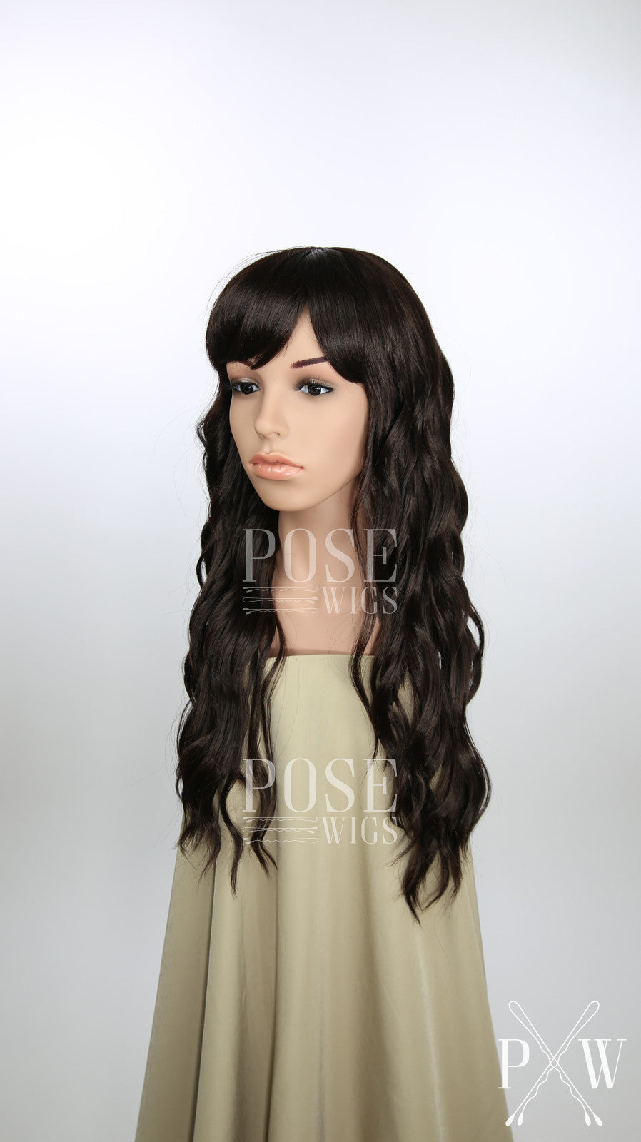 Dark Brown Long Wavy with Bangs Fashion Wig HSOPH10