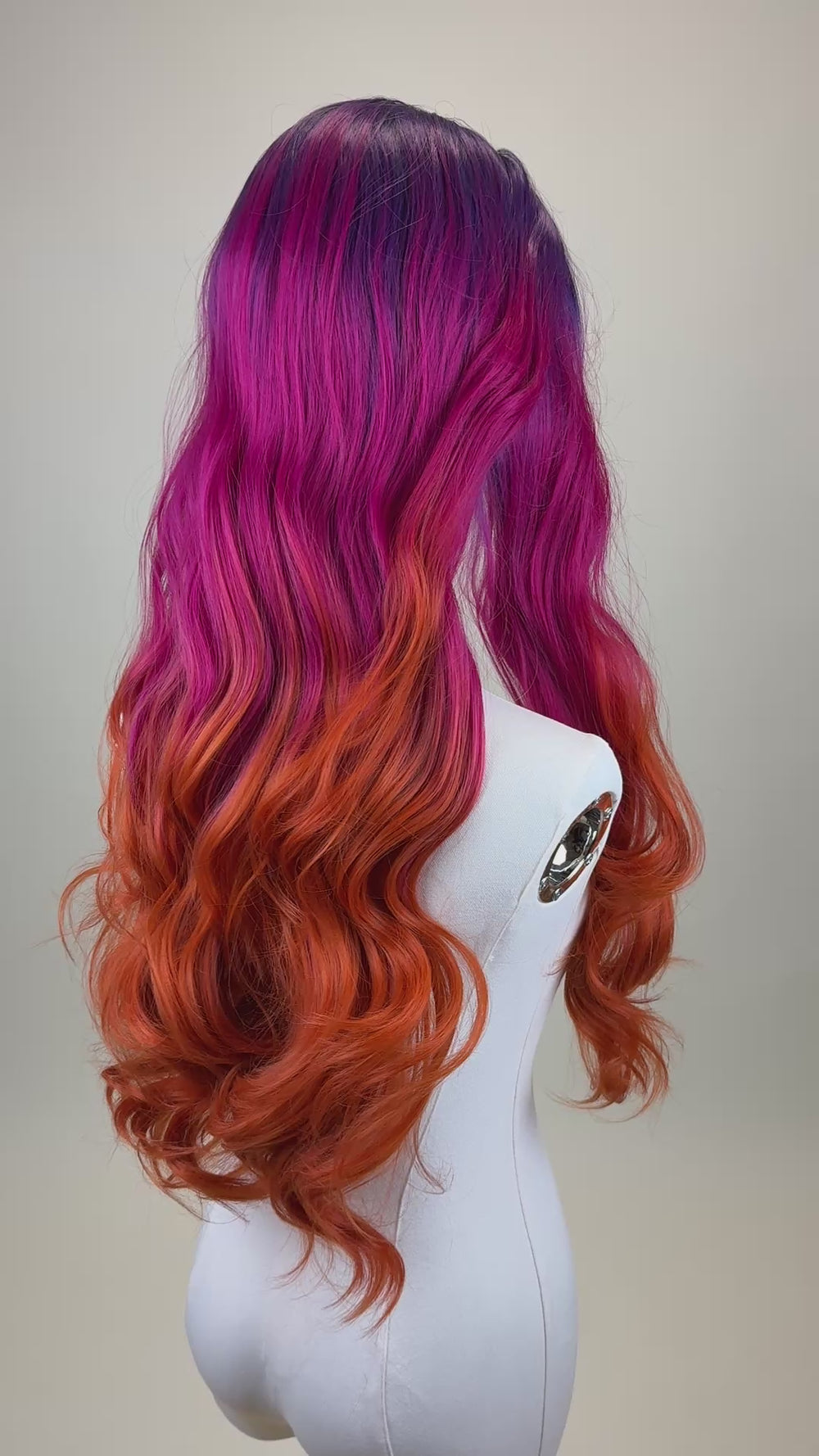• Color: Purple, pink, and orange ombre w/ dark roots