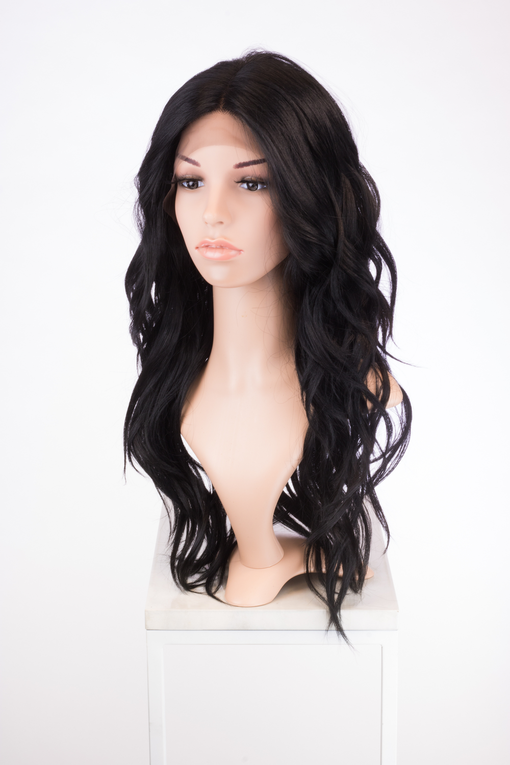 Black Long Wavy Lace Front Wig - Duchess Series LDORN1 Orion Midnight Black costume or cosplay wig