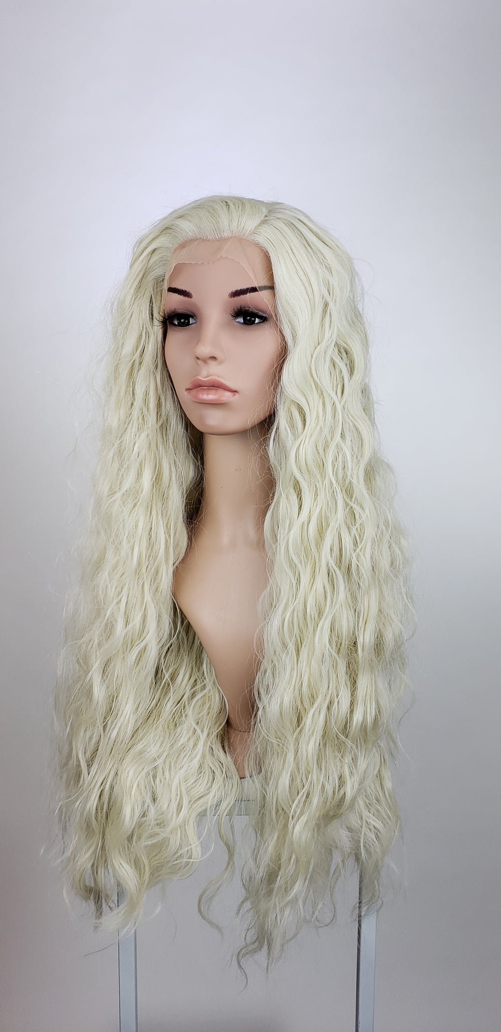 White Blonde Long Wavy Lace Front Wig - Extra Thick 200% Hair Density - Large Size Available - Queen Series LQ032